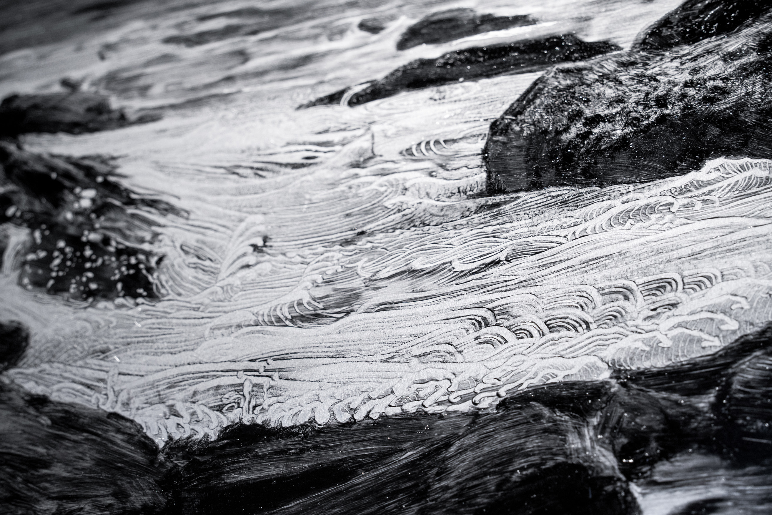 私はその性質を絵画の中に引き寄せるため、工業的で均質なアルミニウムを支持体として選んでいる。